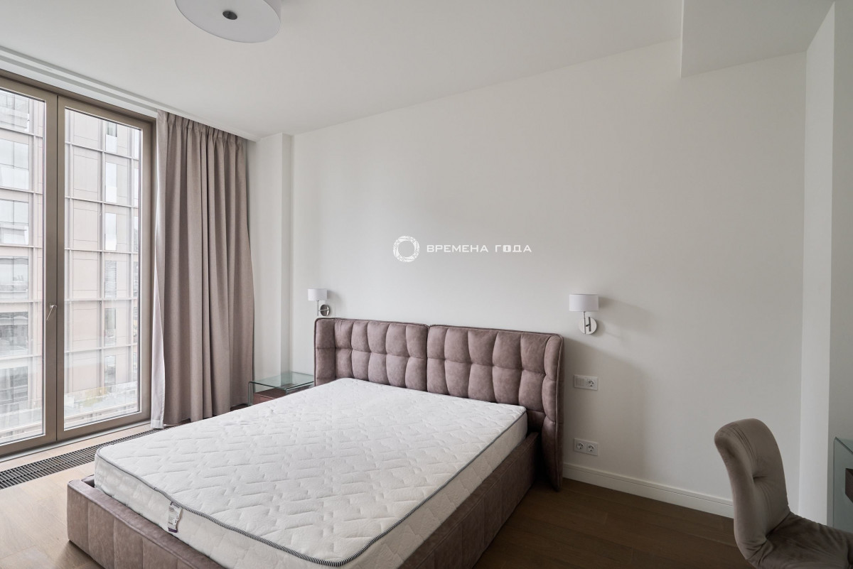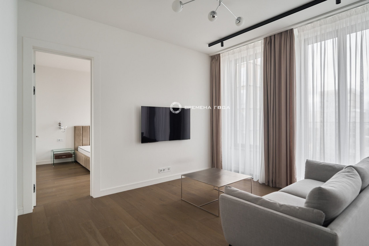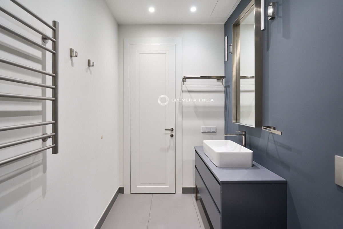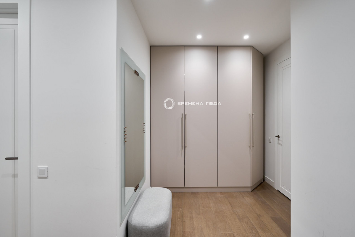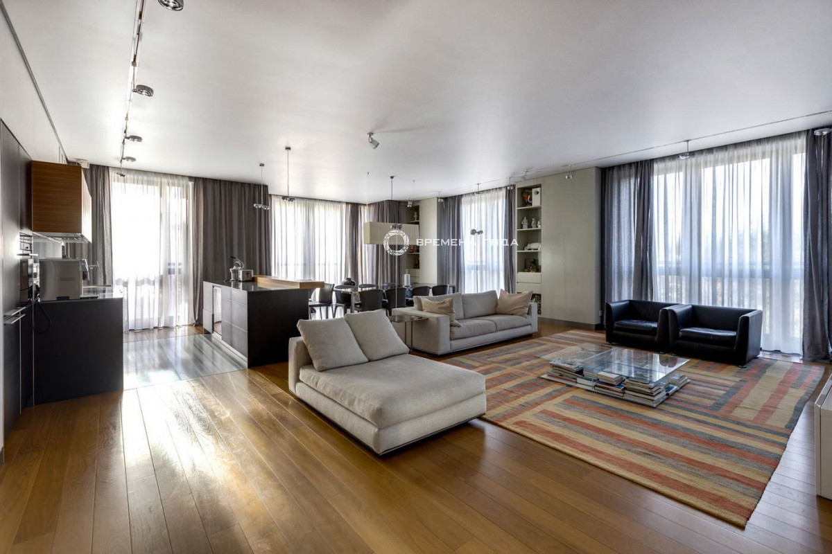 Установлена кухня итальянского бренда Dada. На полу деревянная паркетная доска с системой "тёплый пол". Санузлы облицованы керамогранитом и бетонной плиткой "Терраццо", установлена премиальная сантехника.