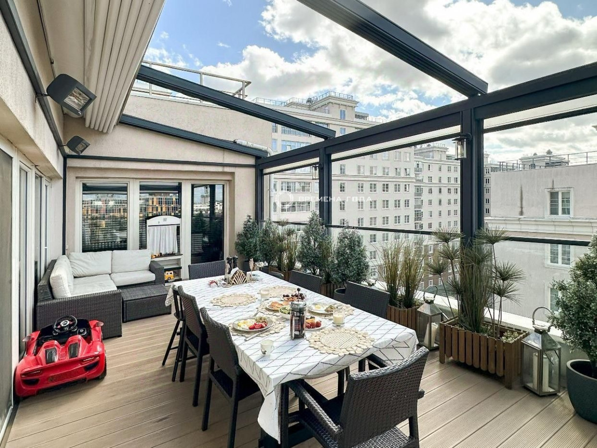 Есть крытая терраса с обеденной зоной и видом во благоустроенный двор.