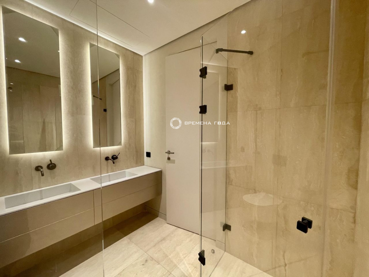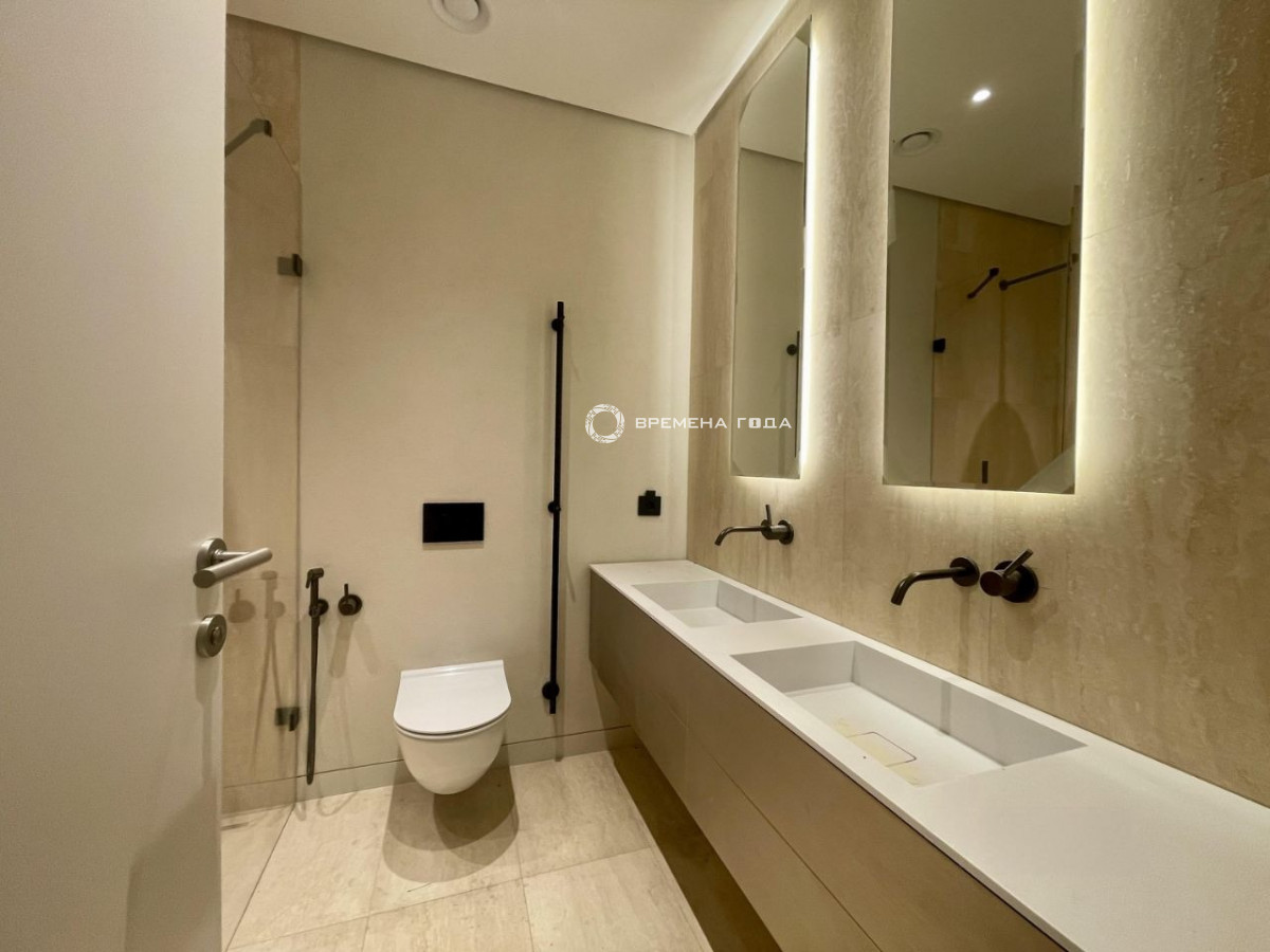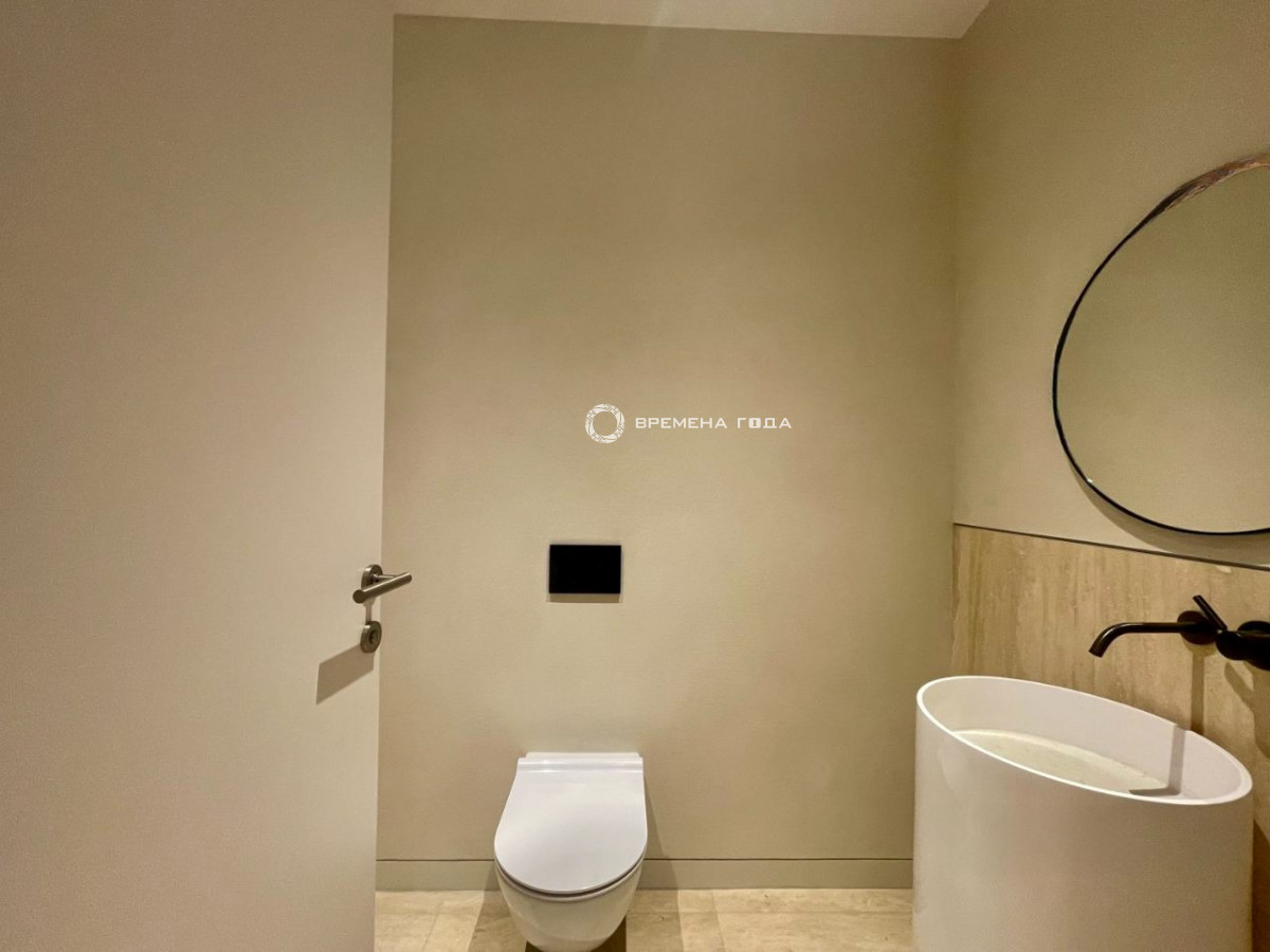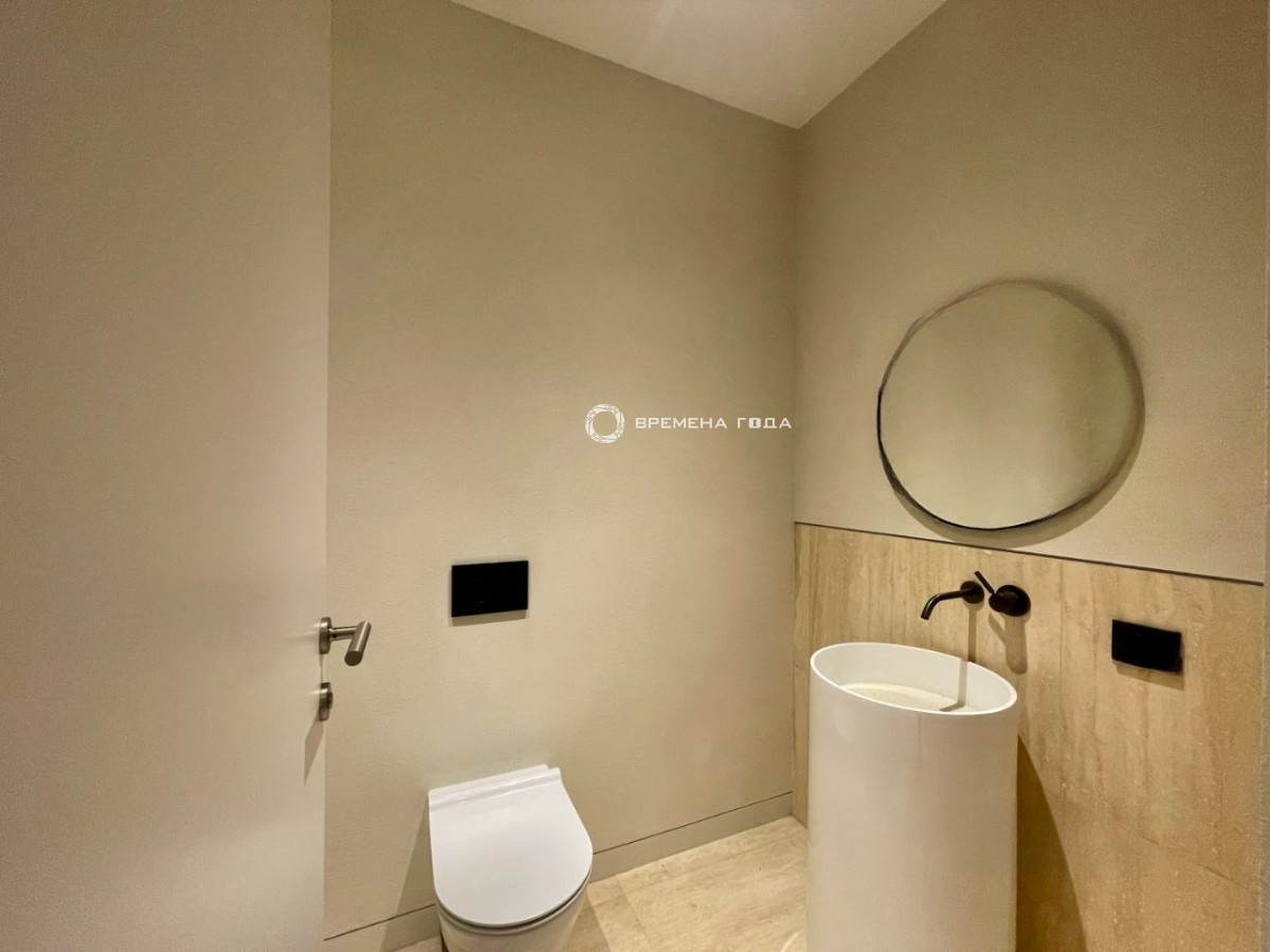 Планировочное решение: кухня с обеденной зоной и гостиной, спальня со своим санузлом, гостевой санузел, гардеробная комната, прихожая.