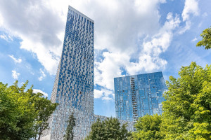 Башни высотой 32 и 47 этажей вмещают в общей сложности 556 квартир. Апартаменты доступны с разными планировками от двух до пяти комнат, а площадь стартует от 59 м². Помимо традиционных, застройщик предусмотрел эксклюзивные двухэтажные квартиры. Эти роскошные апартаменты предоставляют простор для дизайнерских экспериментов и удивляют высотой потолков, увеличенной до 5 метров.