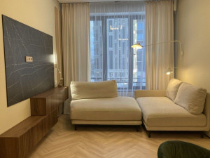 Единое дизайнерское лобби – как комплимент художникам-авангардистам той эпохи в интерьерах, два приватных зеленых садика на территории и акцентное краснолистное дерево в центре Композиции №24, прорастающее сквозь специальный округлый проем порт-кошера перед лобби, дополняют оригинальную архитектурную концепцию дома.