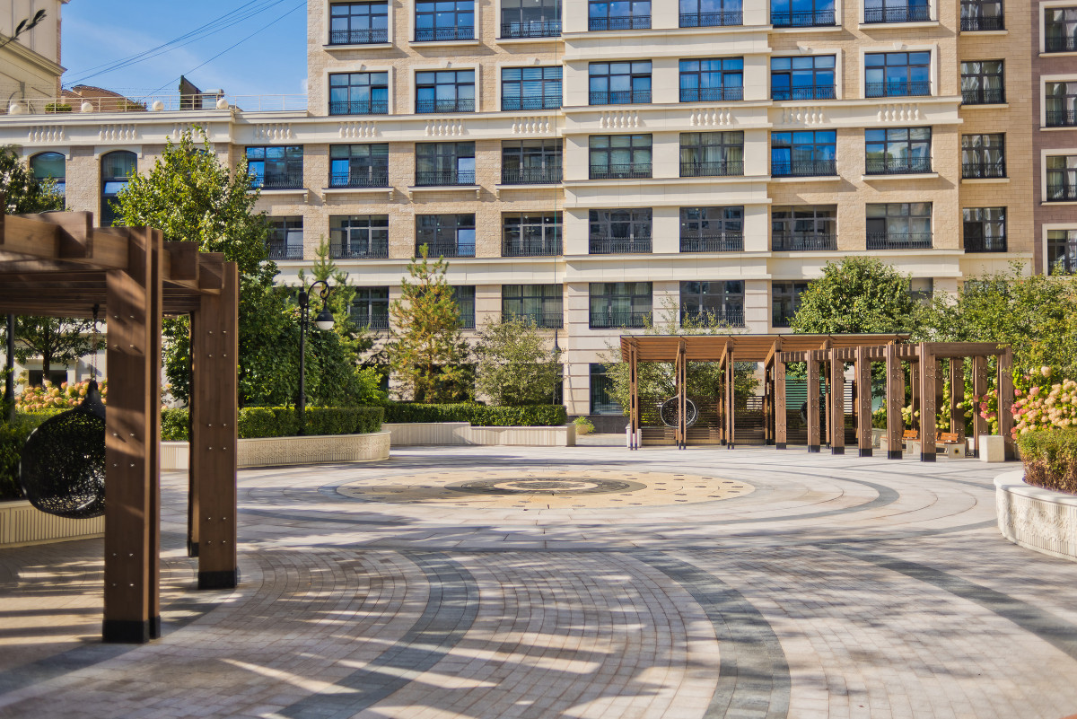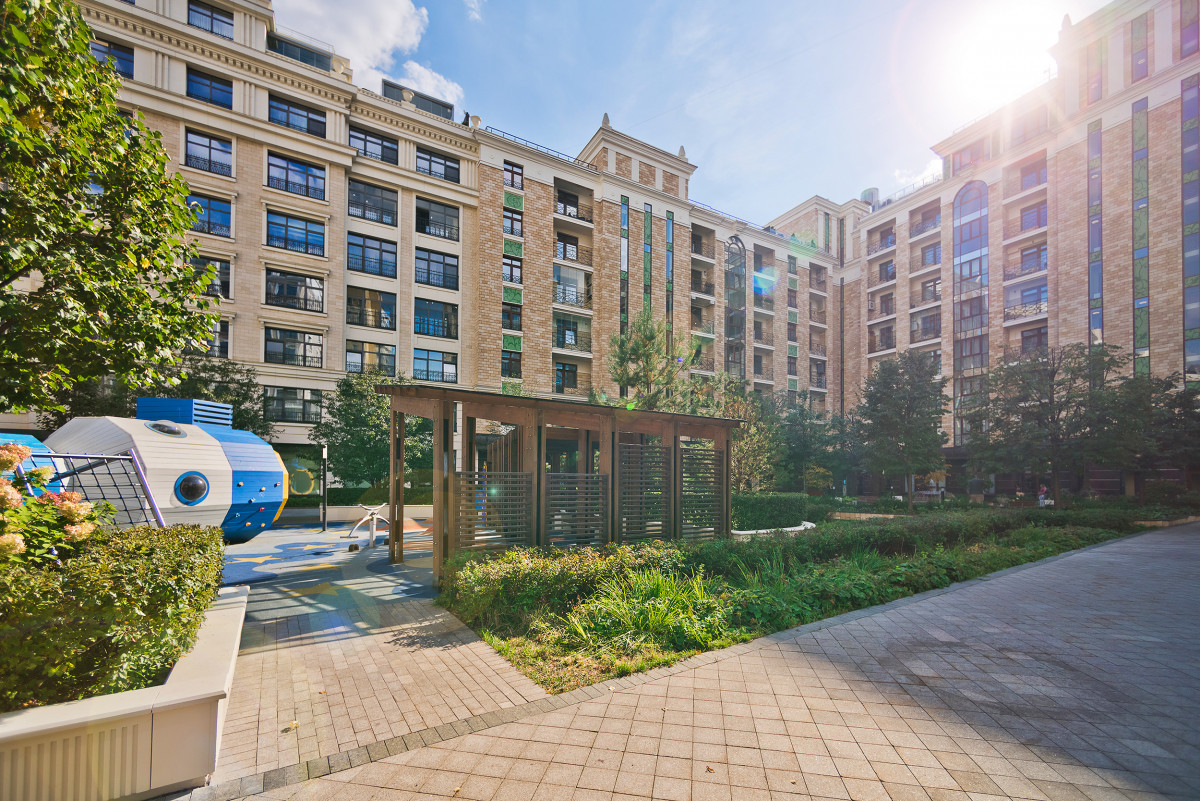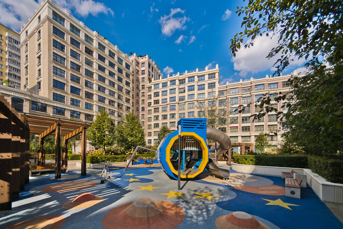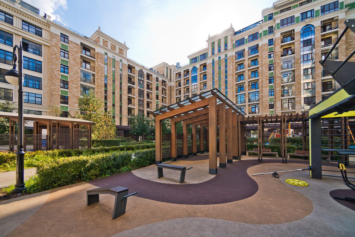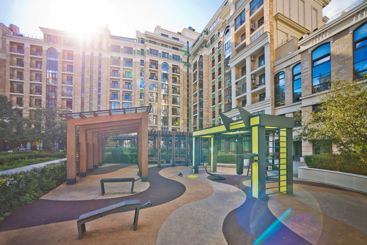 Огороженная благоустроенная территория жилого комплекса — идеальное пространство для отдыха. Спортивные и игровые площадки, протяженная прогулочная зона и велодорожки, миниатюрный парк с фонтаном позволяют с удовольствием проводить время на открытом воздухе. Вся территория покрыта скоростным соединением Wi-Fi, во дворе установлены устройства для беспроводной зарядки смартфонов и гаджетов.