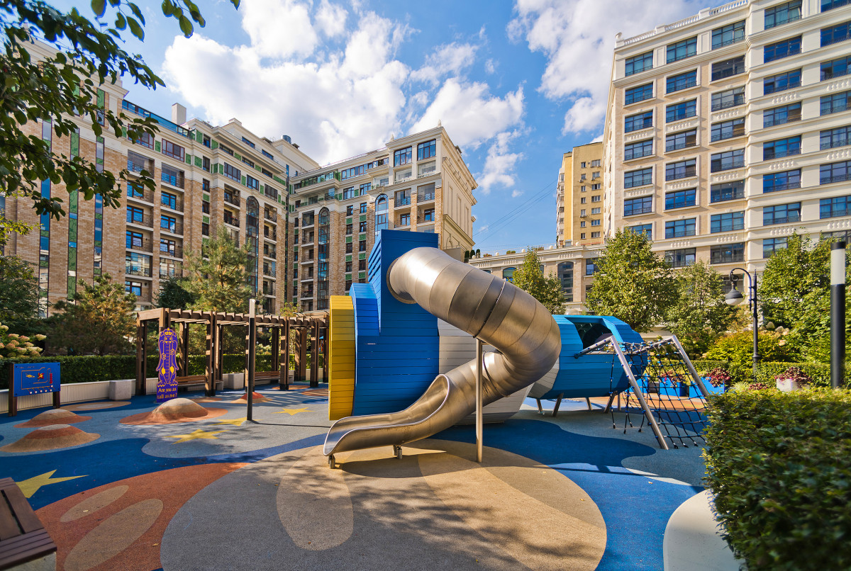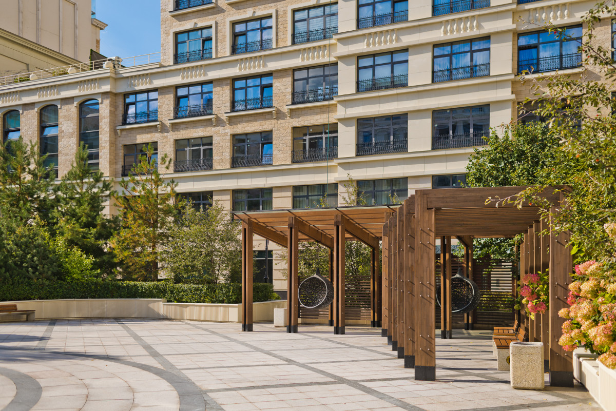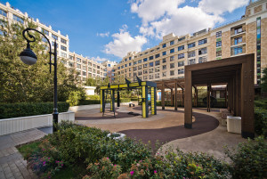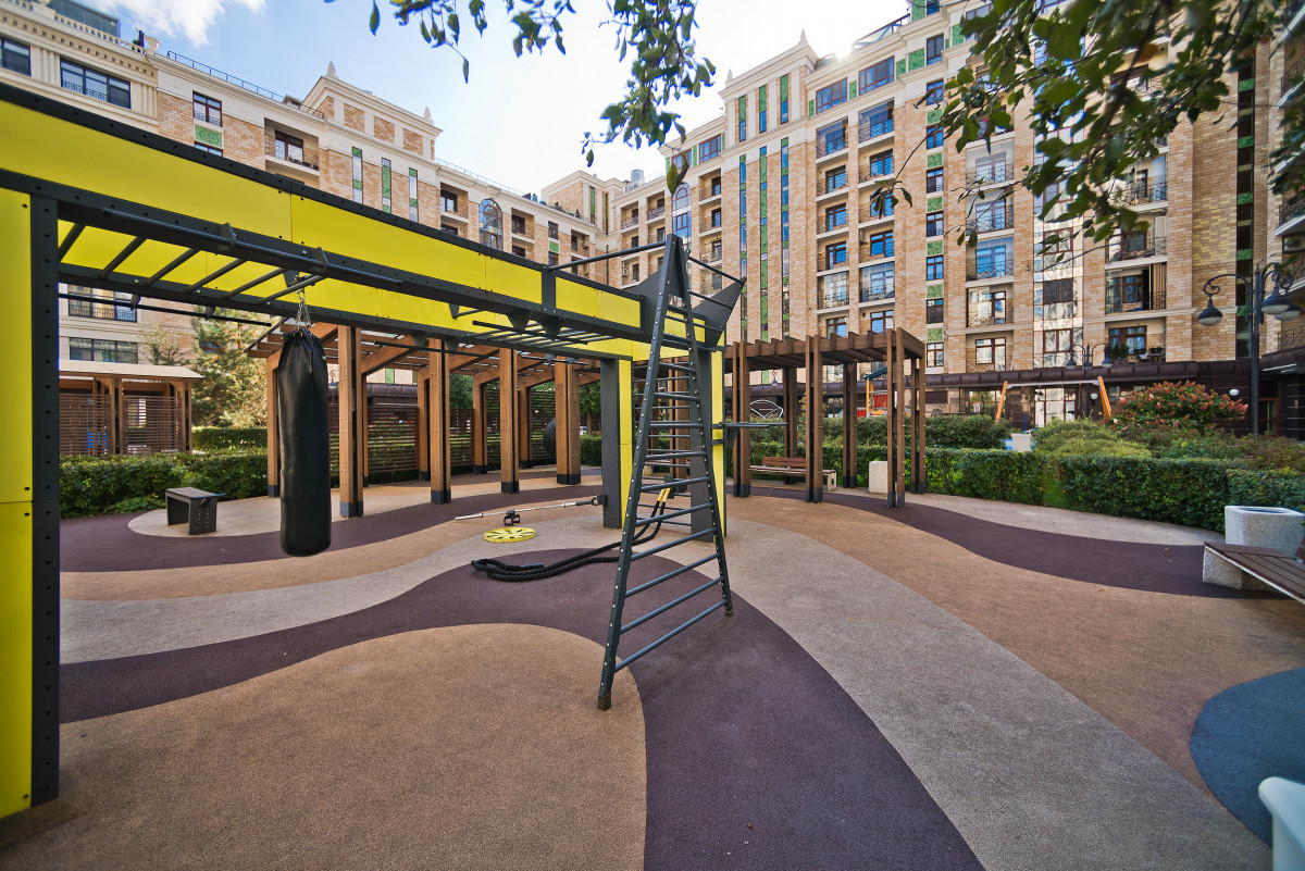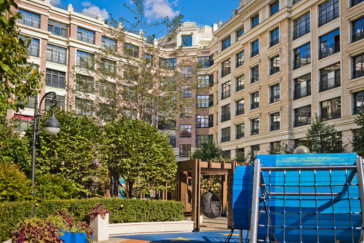 Огороженная благоустроенная территория жилого комплекса — идеальное пространство для отдыха. Спортивные и игровые площадки, протяженная прогулочная зона и велодорожки, миниатюрный парк с фонтаном позволяют с удовольствием проводить время на открытом воздухе. Вся территория покрыта скоростным соединением Wi-Fi, во дворе установлены устройства для беспроводной зарядки смартфонов и гаджетов.