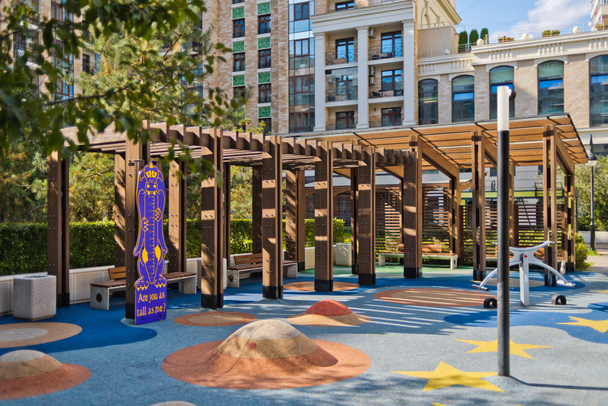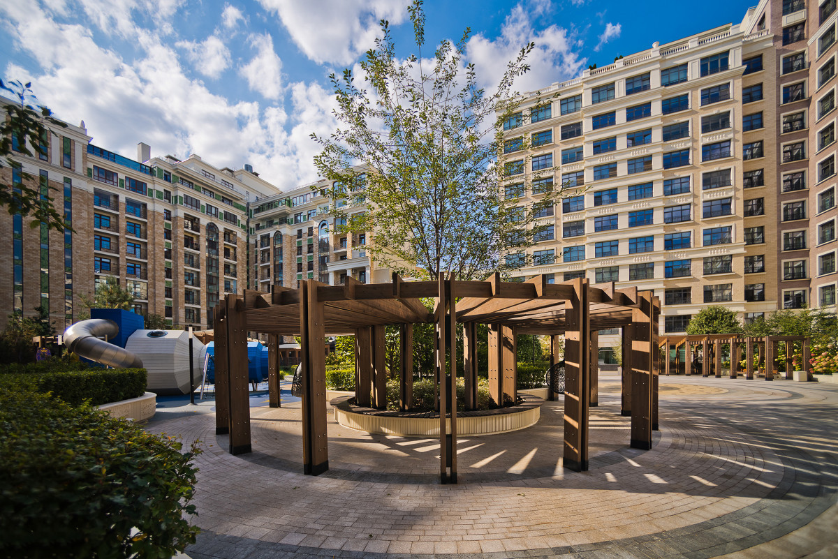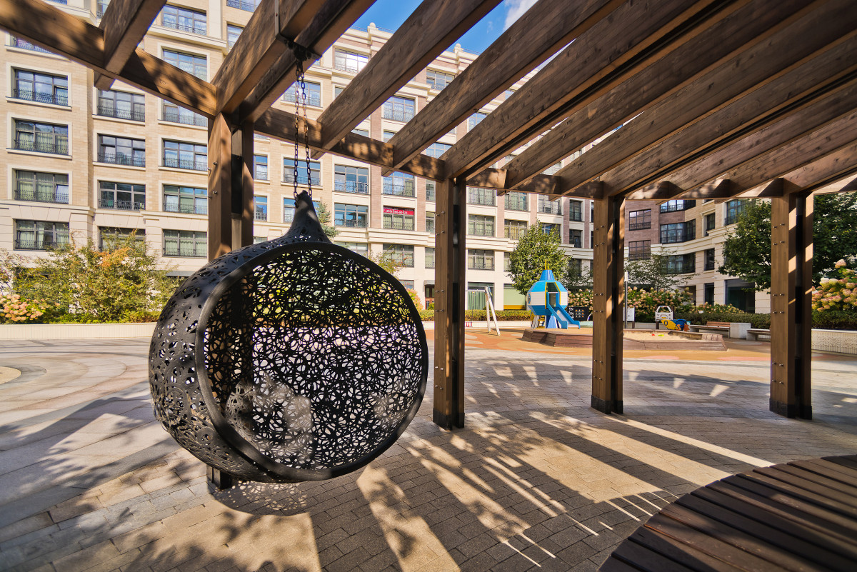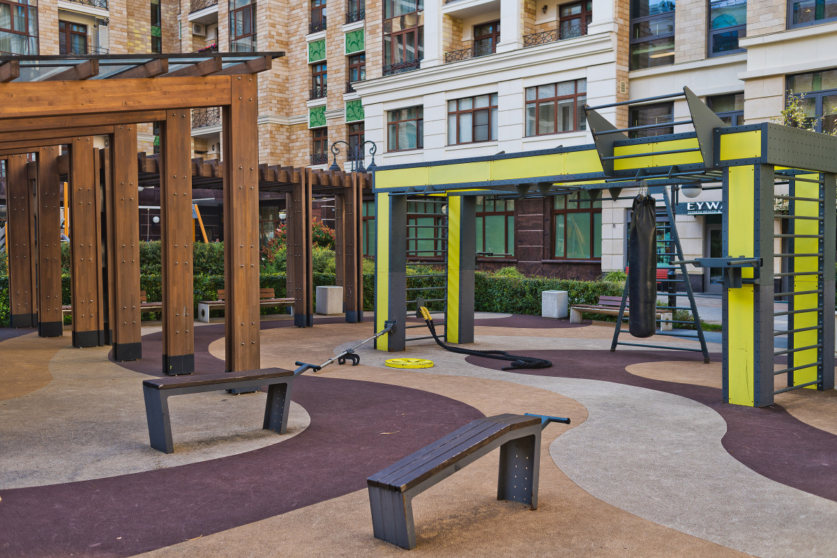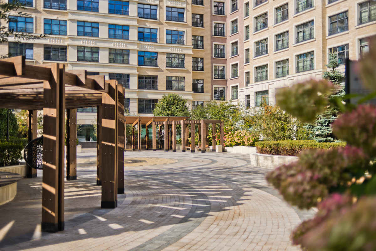 Огороженная благоустроенная территория жилого комплекса — идеальное пространство для отдыха. Спортивные и игровые площадки, протяженная прогулочная зона и велодорожки, миниатюрный парк с фонтаном позволяют с удовольствием проводить время на открытом воздухе. Вся территория покрыта скоростным соединением Wi-Fi, во дворе установлены устройства для беспроводной зарядки смартфонов и гаджетов.