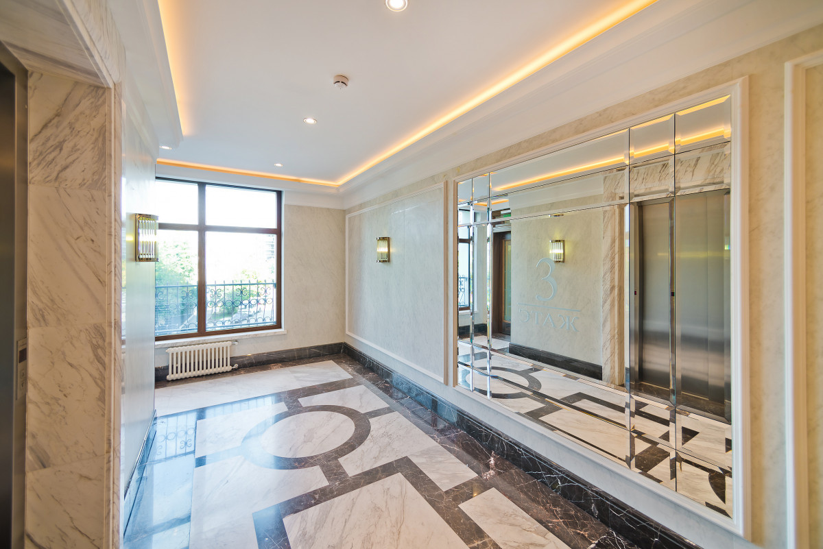 Элитный дом включает 8 секций по 7–13 этажей и вмещает 202 апартамента. В продаже есть квартиры разной планировки и цен от 1 до 4 комнат. Площадь начинается с 67,4 и достигает 265,3 м². Высота потолков в доме — 3,5 м. Вы можете купить квартиру с эркером или панорамным остеклением.