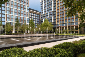 Во дворе многофункционального комплекса Око разбит прекрасный ландшафтный парк, органично дополняющий окружающее пространство. В приоритете приватность обитателей дома – жилая часть полностью изолирована от бизнес-центра.