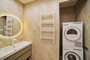 Жилая площадь комплекса занимает примерно 122 тысячи квадратных метров. Покупателям предлагаются 1-, 2- и 3-комнатные апартаменты с площадью соответственно 80-90, 150-177, 220-298 квадратных метров. Общее число таких квартир составляет 583.Также доступны для приобретения и пентахусы с метражом 790-1151 квадратных метров. В каждом жилище имеется по 2 санузла. Высота потолков в помещениях составляет 3,2 метра. Жилье сдается в предчистовой отделке –покупатель может реализовать дизайн помещений по своему усмотрению.