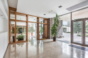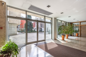 Внутренняя территория комплекса украшена великолепным ландшафтным дизайном. В центре находится прогулочная зона с мощеными дорожками, окруженными ухоженными газонами. Вдоль тропинок расставлены скамейки и кованые фонари, высажены деревья редких пород. На клумбах растут декоративные кустарники и изысканные цветы. Благодаря такому наполнению двор идеально подходит для неспешных прогулок и отдыха.
