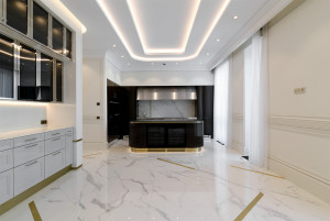 Особняк имеет переменную высоту — от 5 до 8 этажей. Благодаря этой особенности фасад выглядит особенно заметно и в то же время благородно. С внешней стороны стены украшены необычными балконами, рельефной лепниной, витражами. На фасаде вы увидите натуральный камень, а внутренняя отделка выполнена с применением мрамора и венецианской штукатурки. Благодаря такому оформлению, жилой комплекс «Опера Хаус» стал настоящим воплощением элегантной роскоши, которую ценят обеспеченные люди с хорошим вкусом. От других проектов, реализуемых на Остоженке, он отличается сдержанной элитарностью.