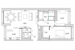 Все квартиры с отделкой укомплектованы сантехникой, встроенной мебелью и бытовой техникой ведущих мировых брендов.