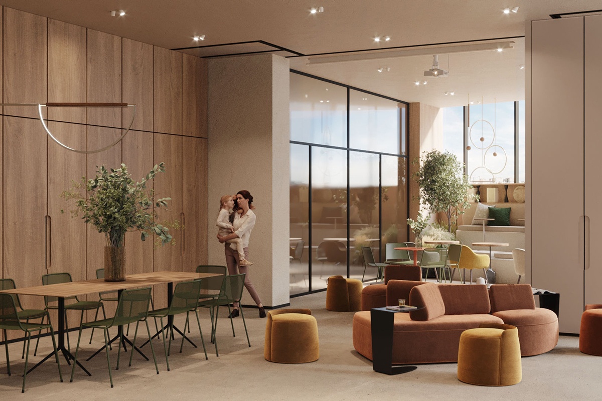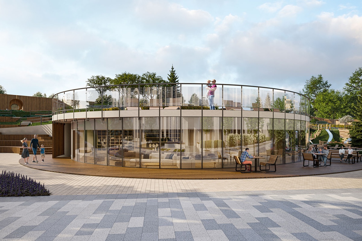 Среда двора-парка дополняется насыщенной средой Clubhouse, который расположен в отдельном здании и доступен только для жителей. Вместе они работают как единый организм и позволяют резидентам воплощать разные жизненные сценарии, не покидая территории дома. В Clubhouse предусмотрены соседский центр по стандарту Friend’s Lab — большое уютное пространство с террасой на кровле, творческой атмосферой и продуманным интерьером; игровая комната по стандарту Kid’s Lab; фитнес-зал по стандарту Fit Lab с зонами силовых тренажёров, групповых и индивидуальных занятий, кардио; собственный 25-метровый бассейн с сауной, хаммамом, хот-табом и wellness-зоной.